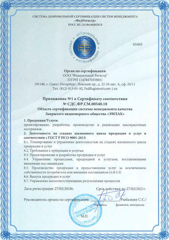 Предназначен для применения в комплексных системах лакокрасочных покрытий для защиты металлических конструкций подводной части корпусов судов, палуб, грузовых трюмов, судовых конструкций, а также химических объектов и нефтехимических предприятий.